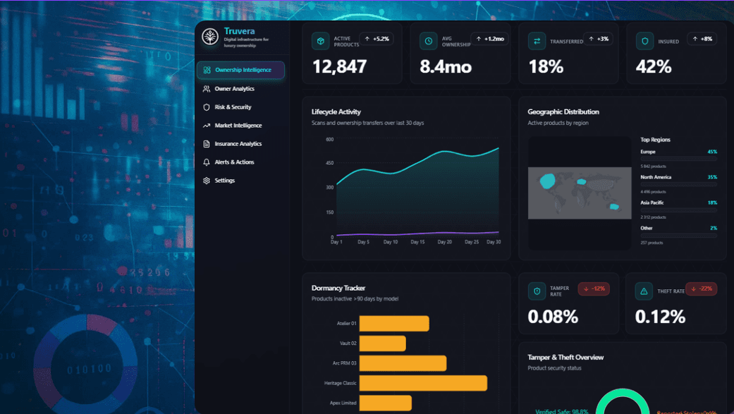 Once purchased, the product’s digital soul lives in the consumer’s LuxVault. Through the app, users can verify authenticity, claim ownership, and access loyalty perks, embedded functions, and resale options - all within one elegant interface. It’s the bridge between physical luxury and digital trust.